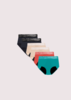 WILL SHIP BY MONDAY 1/26. Just as brilliant as she is beautiful the Ada collection is the foundation for any intelligent underwear drawer. Perfect for the renaissance woman Ada's sleek design is complemented with a floral lace trim. Like all Dear Kate underthings her built-in breathable liner will keep you prepped for anything. This set includes six Ada Briefs with full lining. Like all Dear Kate underwear they i ncorporate revolutionary patent-pending fabric to keep you prepared for anything. Two each of beige and black one each of peacock and watermelon. Machine washable. Save $43 by buying as a set instead of separately. FABRIC CONTENT Body: 76% Nylon 24% Lycra. Lining: 100% Micropolyester. Lace: 83% Nylon 17% Spandex. SPECIAL CARE RECOMMENDATIONS Dear Kates provide protection against light leaks; if wearing as period underwear please use in addition to your regular pad/tampon routine. Just like other advanced technical fabrics Dear Kates perform best when washed without the use of fabric softeners. MADE IN NYC FREE SHIPPING AND RETURNS TO THE US & FREE INTERNATIONAL SHIPPING ON ORDERS OVER $100
